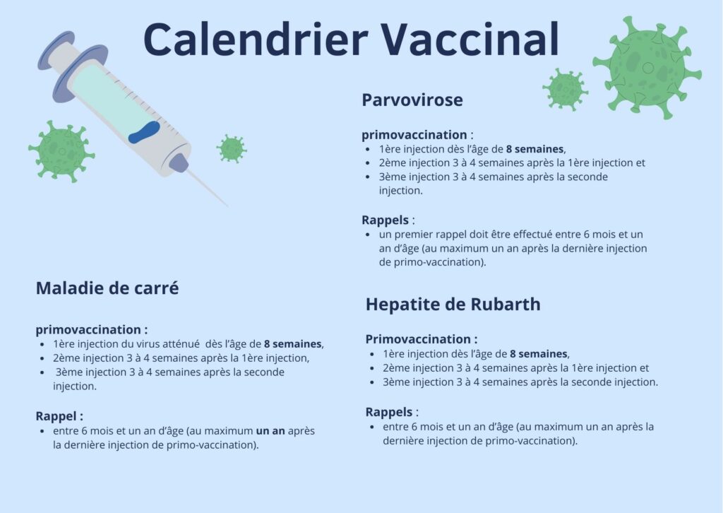Les vaccins sont à renouveler annuellement afin que votre chien soit protégé tout au long de sa vie.